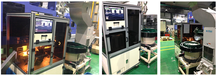 皮带型在线检测设备可与流水线、注塑机或者组装线末端无缝对接。通过震动盘、提升机、人工送料至输送带,输送带上方、左侧、右侧的相机拍照检测,检测出结果反馈给工控机处理,良品不良品分选至不同的漏斗,从而代替人工品鉴,一台设备代替多个人工